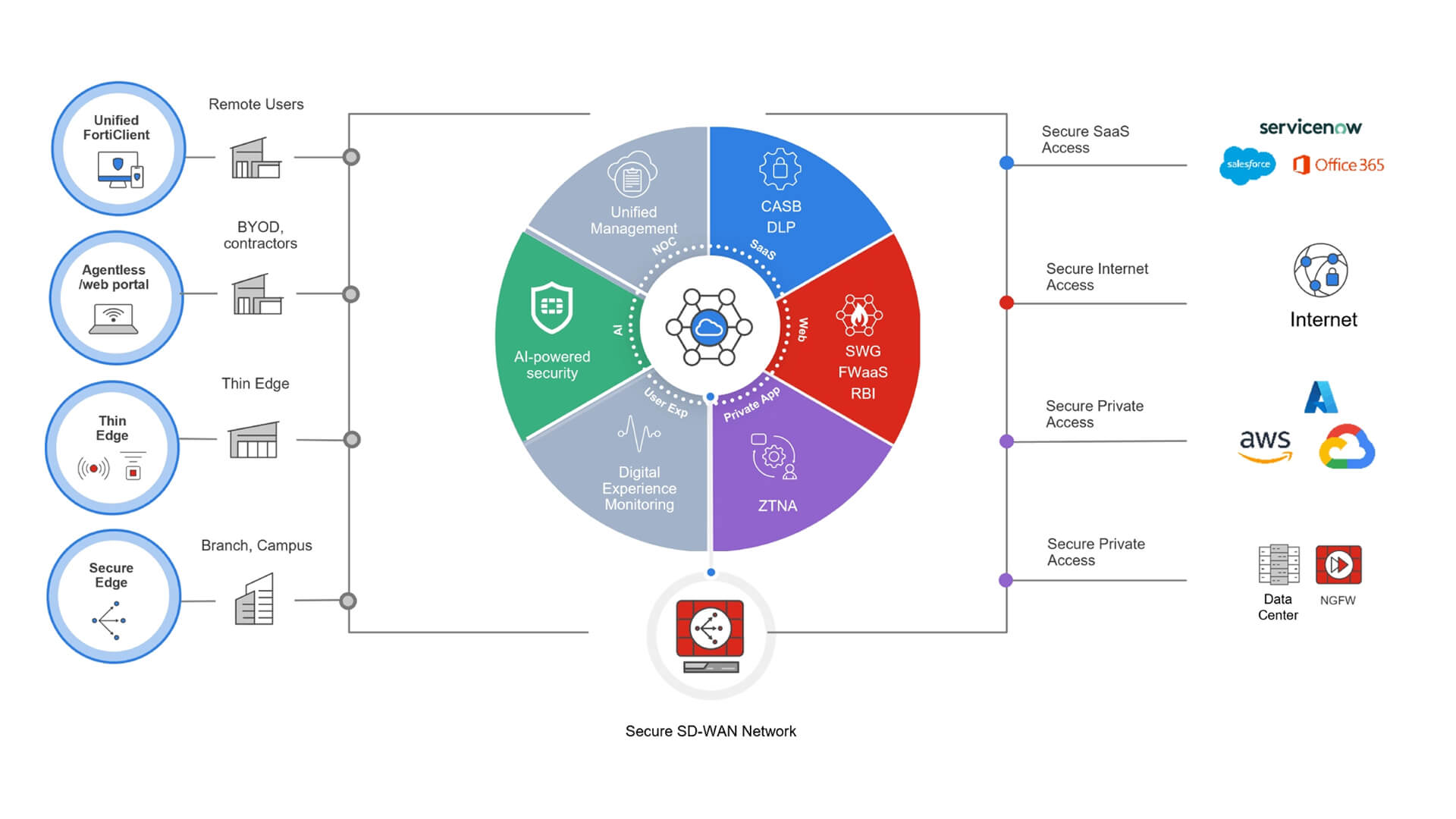 Fortinet’s Multi-Cloud On-Ramp feature enhances the cloud experience by decreasing latency and accelerating data transfer rates, regardless of the environment, be it public, private, or hybrid clouds. Thanks to this, high-performance and secure connectivity to, within and among different cloud services is possible.ss